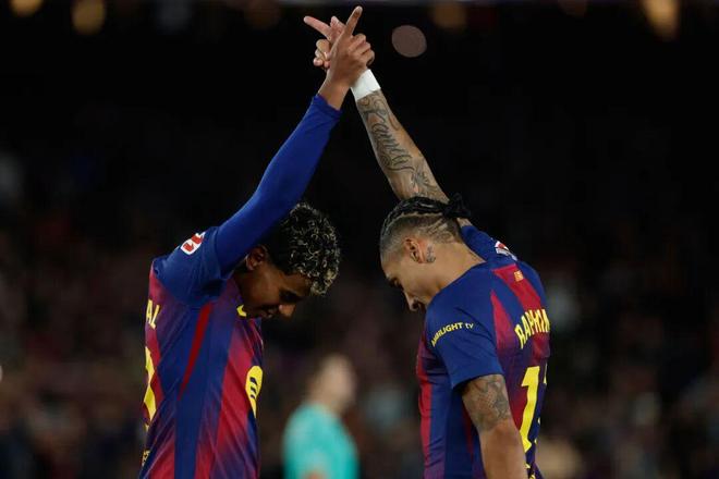 拉菲尼亚和亚马尔更是凭借上赛季表现,在金球奖评选中名列前茅。两人在巴萨主打的4231阵型中,角色绝不仅限于边锋:拉菲尼亚从低效边锋,变身实际上的左侧自由人,在左后卫巴尔德开拓边路的情况下,他可以活跃于肋部区域,甚至客串前腰位,以关键的射门与传递决定比赛走势,上赛季贡献34球25助攻的华丽数据,只可惜他本赛季受困于伤病,输出降低。亚马尔以创意主导巴萨进攻方向,在进球效率上也有大幅提升,弗利克年底也已经试验过让他出现在10号位上,而这是否预示着亚马尔像梅西一样,终极进化会是成为“伪9号”?